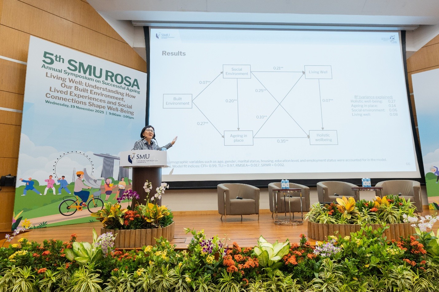 This year, ROSA held its 5th Annual ROSA Symposium on Successful Ageing on 19 November 2025, both online and in-person at the SMU Mochtar Riady Auditorium. The theme of this symposium was “Living Well: Understanding How Our Built Environment, Lived Experiences and Social Connections Shape Well-Being", in which the symposium explored how our environment can better sustain our ageing population by enhancing lived experiences and social connections of older adults. It featured discussions between academic experts on the policies that can be implemented to tackle social issues arising from an ageing society in Singapore. In total, more than 250 participants attended the symposium, both physically in-person and online.